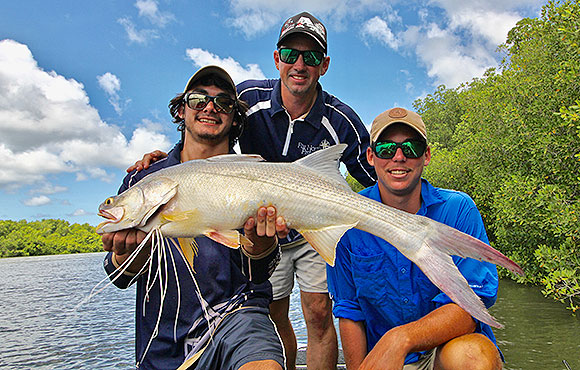 Grew up here. They know the waters around Weipa and the Cape. They’ve got the rods, reels, lures, jigs, plastics and fly, as well as the know-how, to help you land the big ones.